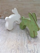 This ceramic Bunny Bank is handmade of brown or white stoneware and will need to be broken or shaken to reveal its contents. It’s good for loose change and can be enjoyed as a sculpture.