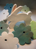 These bunnies multiply in colors of Celadon Blue, Green, Oatmeal, Black with bronze sheen and White Matte. Each unique piece is signed and approximately 7” x 8”.