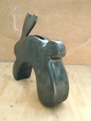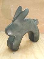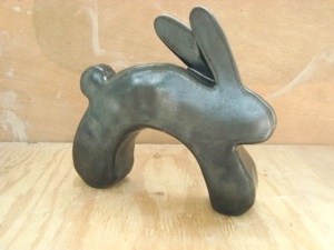 These bunnies multiply in colors of Celadon Blue, Green, Oatmeal, Black with bronze sheen and White Matte. Each unique piece is signed and approximately 7” x 8”.