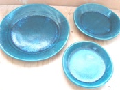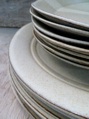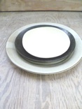 With only three plates your set will be complete. The dinner and salad plates are perfectly sized for a variety of courses and the elevated rim on the dessert plate allows this plate to be used as a shallow bowl ideal for consommés and soups. The unique decorative stripe in the glaze is achieved by hand-dipping.