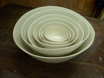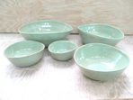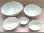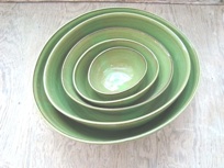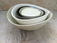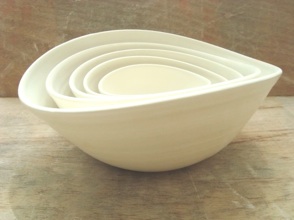 Each Stacking Bowl in this set of five is first hand-thrown and then altered into a unique oval shape. Both practical and beautiful, these bowls can be used for mixing, serving or as decorative objects.